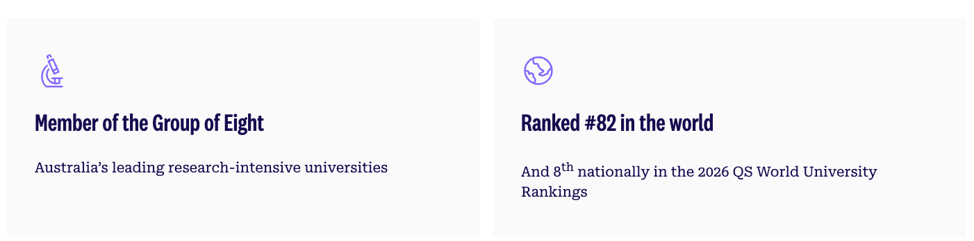 🔹保留了两校原有的雄厚师资和科研实力,依然是 澳大利亚八校联盟(Group of Eight) 成员,学历认可度没有任何水分;