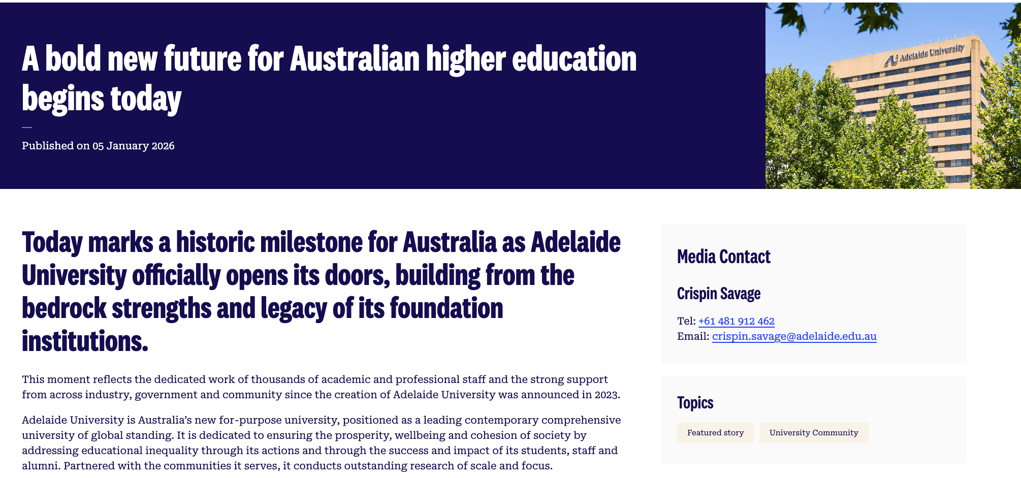 2025年12月之前,原来两校的56000名学生已经全部转入新阿德莱德大学,并且每个人都拿到了量身定制的学习计划。而从2026年开始,全新的招生也正式启动。