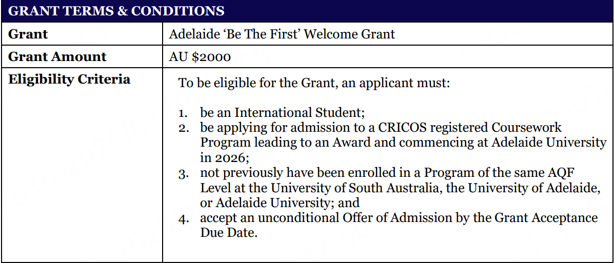 更实在的是,学校为了迎接2026年首届国际新生,直接推出了 “Be The First”迎新助学金:2000澳元(约合人民币1万元),自动发放,不用单独申请,也没有GPA门槛。